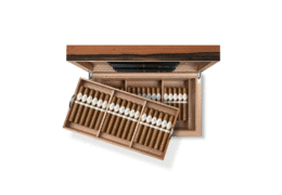 Die Zigarre im Maduro-Deckblatt produziert Unmengen an Rauch und weiße Asche. Die subtile Fruchtsüße ist von Pfefferschärfe, Nuss- und Holzaromen sowie mineralischen Noten unterlegt.