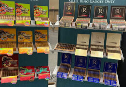 The Drew Estate booth is a little quieter in terms of new products, but of course still with a DJ and loud bass.
